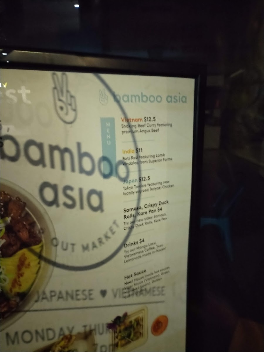 Wrapping up my look at Bamboo Asia’s menu at 41 Montgomery St, it’s clear the restaurant is built around a pan-Asian “tour” that stays approachable while still feeling curated. The Japan lineup leans fresh and lively, from Lava Tuna (sushi) to crisp, bright salads like lotus flower salad and northern catchsakura salad, with a satisfying bite from tempura crunch. On the India side, the comfort factor comes through with tandoori roti and veggie roti, plus bowl options that sound made for a hearty lunch-rangila bowlbhangra bowl-balanced by lighter picks like sundar salad. Vietnam brings the boldest, street-food energy: fire bird banh mi stands out immediately, backed by flavorful, protein-forward choices such as sesame beef salad, shaking beef curry bowlspicy peanut pork bowl, and the refreshing sunny saigon salad. For add-ons, the sides round things out nicely-crispy duck rolls (3 pieces), kare pan, and samosa-and the drink list finishes the experience on a sweet or citrusy note with mango lassi, vietnamese chilled coffee, and yuzu lemonade. Overall, the menu reads like a well-edited mix of fresh salads, filling bowls, and snackable extras that makes it easy to build a meal no matter what craving you walk in with.